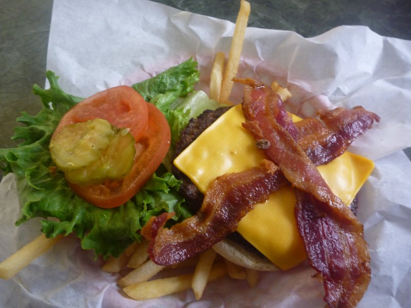 アメリカンなものが食いたかったので、色々詰めたハンバーガーを注文。