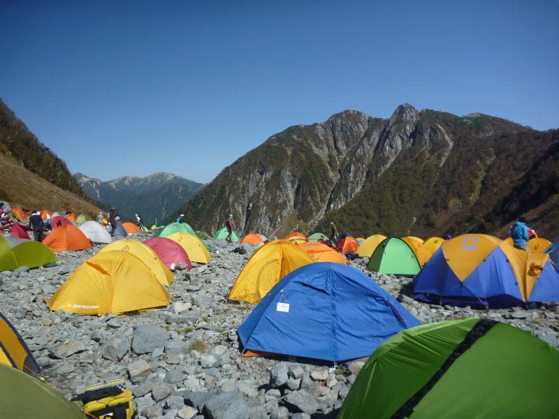 しかし、紅葉シーズン、晴天、3連休と3拍子揃った涸沢は、生半可なものではなかったと後の被害者俺は語る。