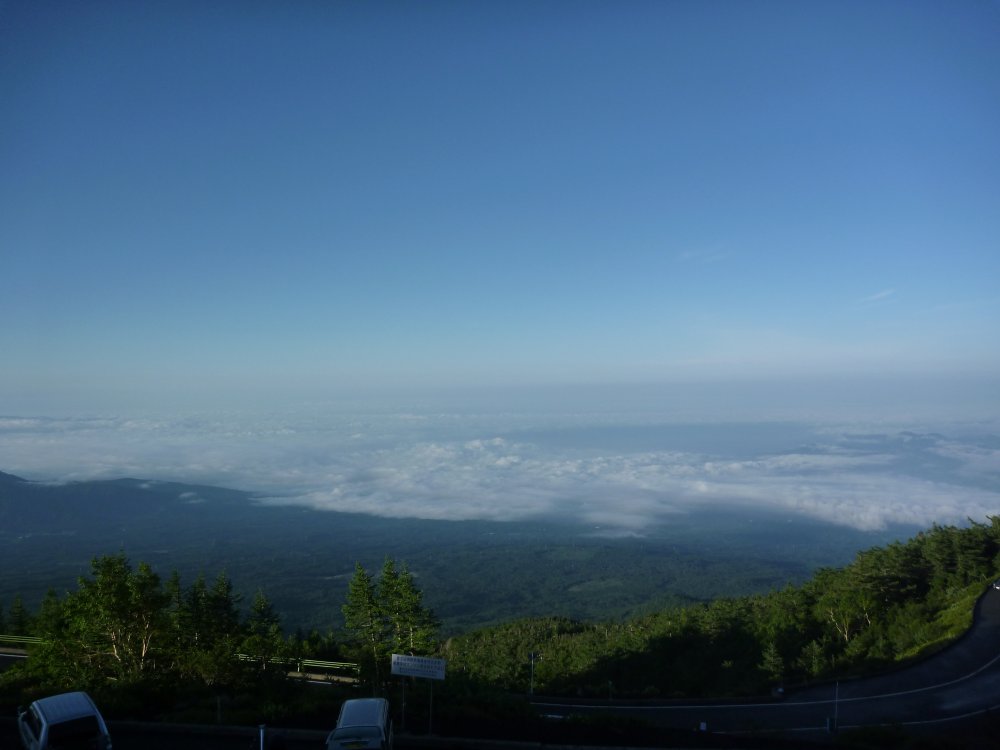 夜に着いたから分からなかったけど、5合目でも十分景色綺麗。