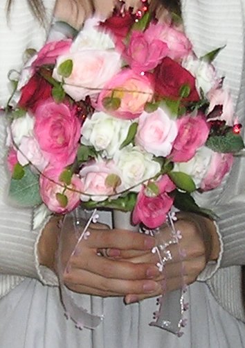 ピンクドレス用のラウンドブーケ。ちょっとブレてますが。