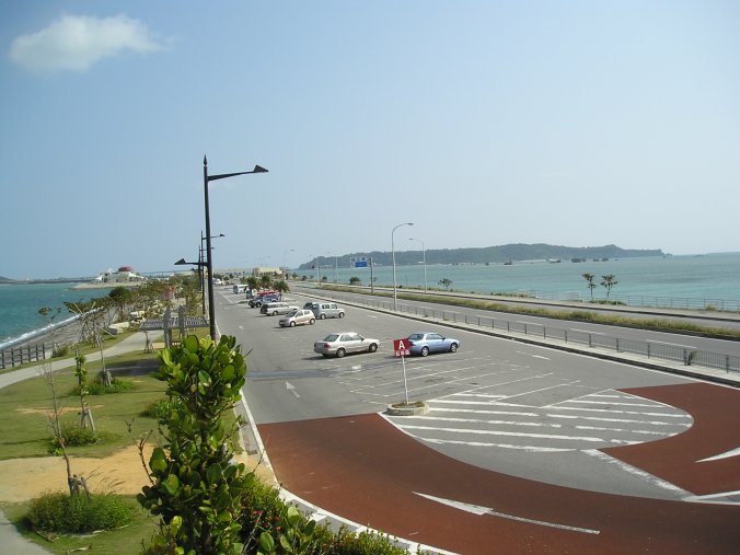 島に渡る橋の途中にある、パーキングエリアです。