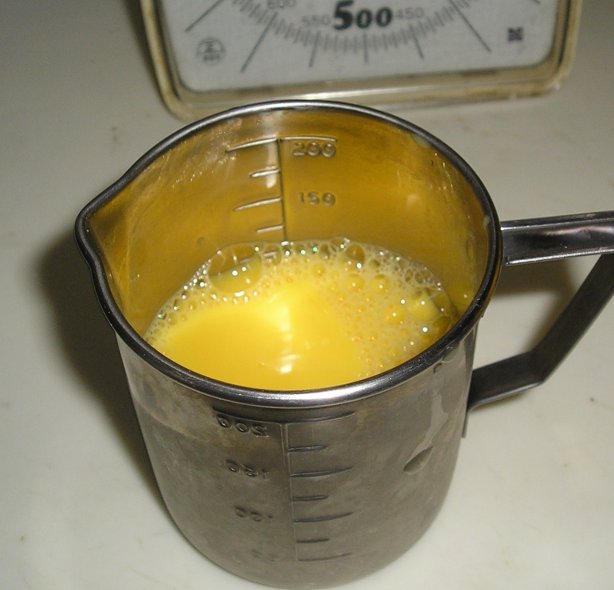 卵に水を入れて、分量を100ccまで増やす。