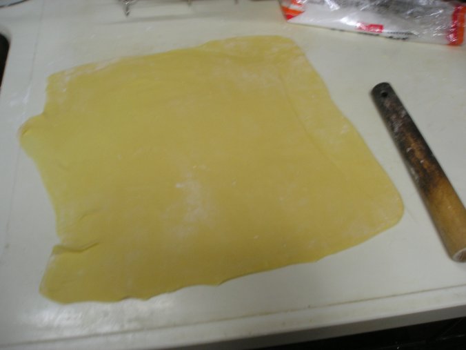 麺棒なんかで、縦方向、横方向と順番に、均等な厚さになるように伸ばしていきます。