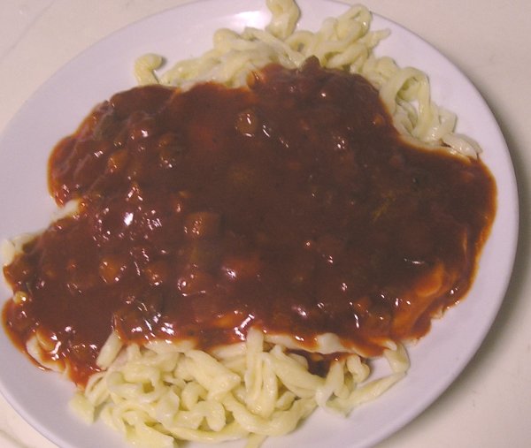 それに、ミートソースをかけて完成!