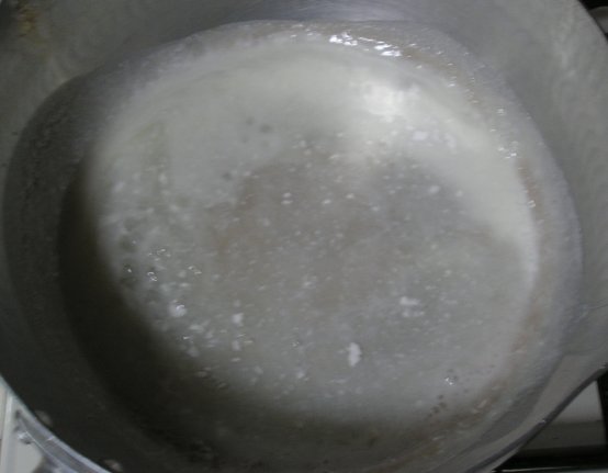 沸騰前に火を止める。具体的には、鍋の周りに泡がぷくぷくと出てきたら止める。