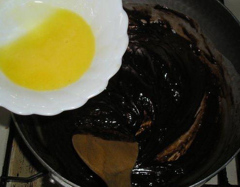 鍋に生クリームと水あめを混ぜて、火にかける。