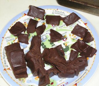 ココアをまぶしながら切ると、くっつくのが抑えられます。