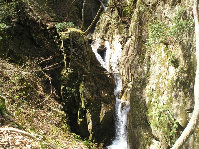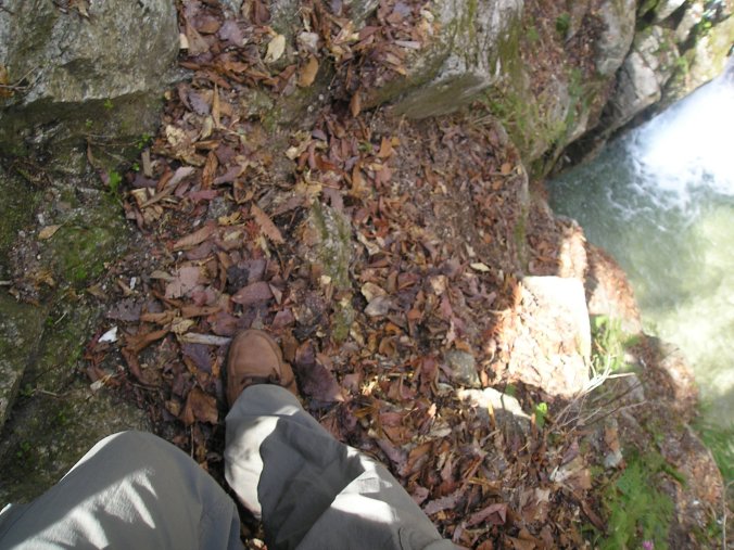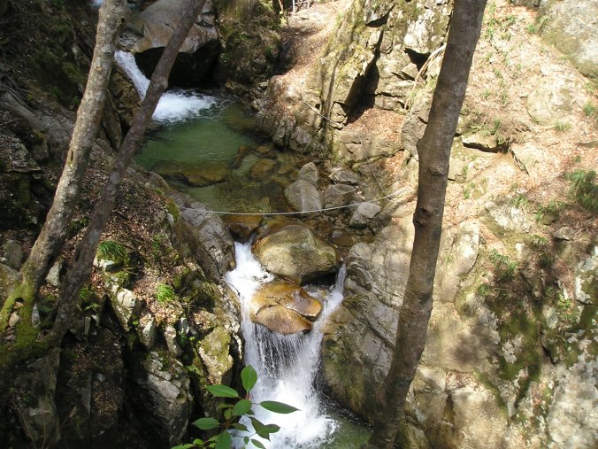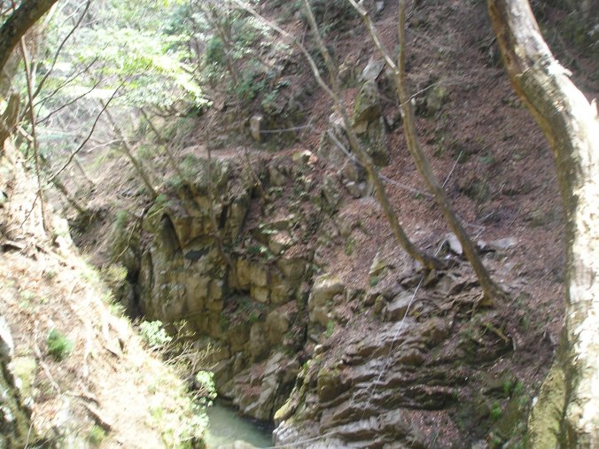 滑って道を踏み外すと15メートルぐらい下の滝つぼにドボンできる。そこまで命が保てるかは不明。