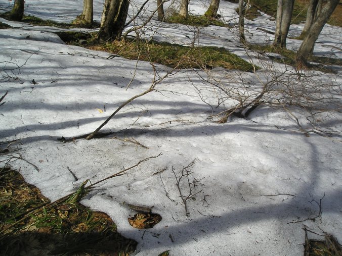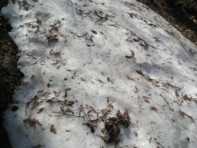 日陰になってるので、冬の間に降った雪が、まだ残ってるみたいです。