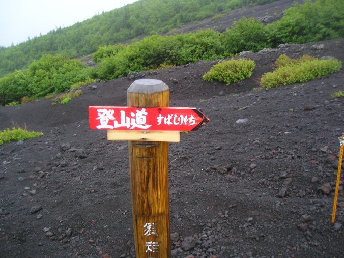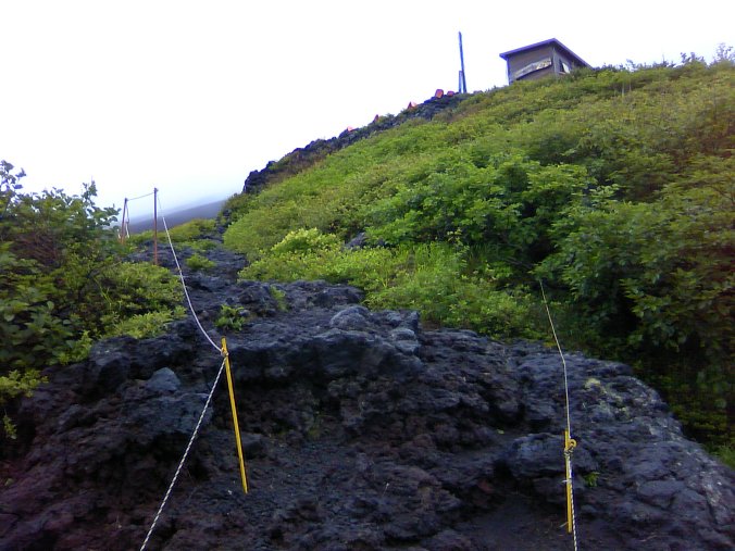 前の河口湖口から登った時も、7合目から岩場になって、ほとんどクライミング状態になってた。