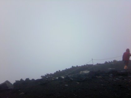 9合目ぐらいのところで、7合目で宿から出てきて、少し話した団体と出くわす。