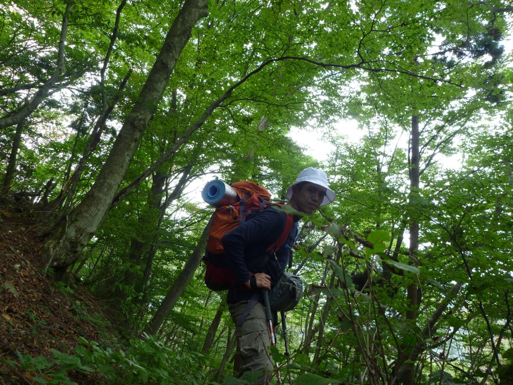 ベストなのは地図にも「キャンプ適地」と書かれている金糞峠と八雲ヶ原の分かれ道のところにある、広い平地なんだけど、既に人がいた。