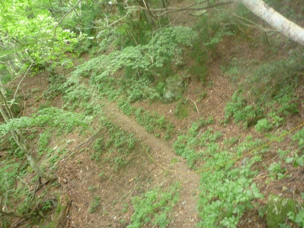 下に降りる道があるみたいで、この道を行ったんだが、ものすごく狭いし急。