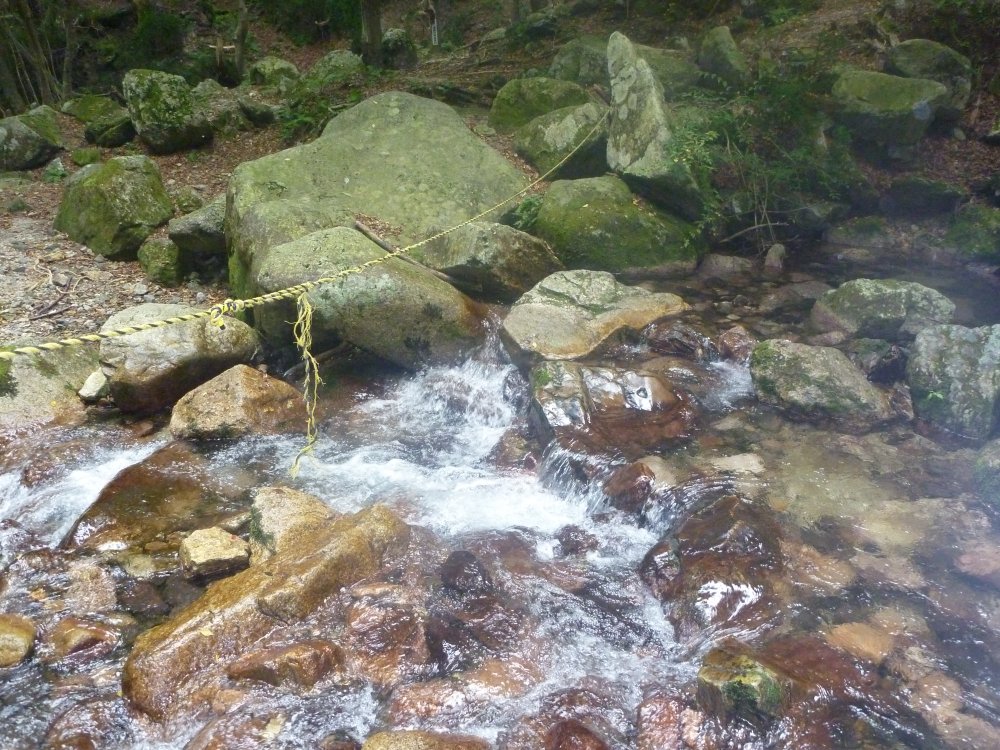 沢を渡ったりするところもあるんだけど、そこにもまた申し訳程度のロープが。