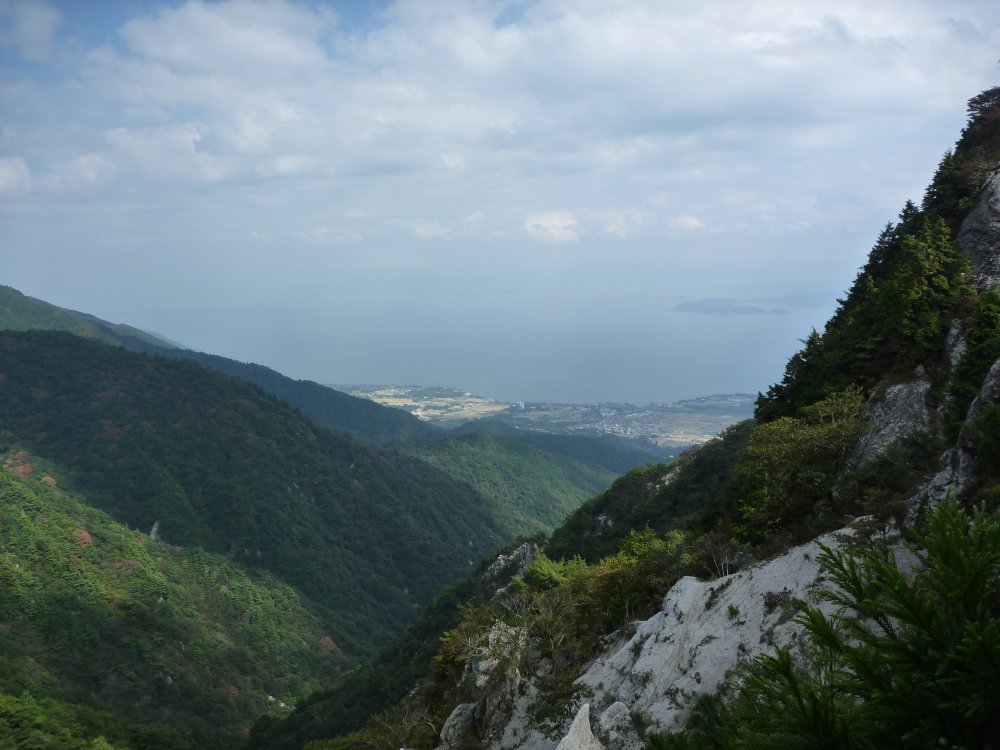 山頂の道も狭くて、足を滑らせたらシャレんならん地形。