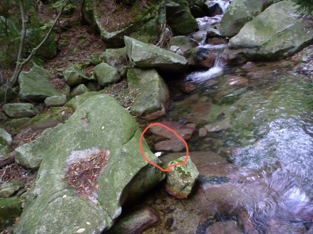 ファイト不発な俺は、そんなとこ渡れないので、安全に沢が狭くなっているところを渡った。