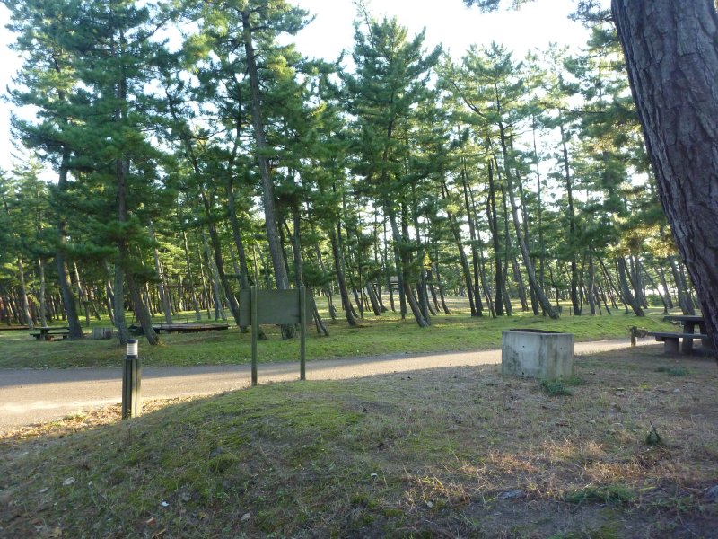 なぎさドライブウエイのはしっこのすぐ近くに、キャンプ場があり、ここにテント張る予定だった。