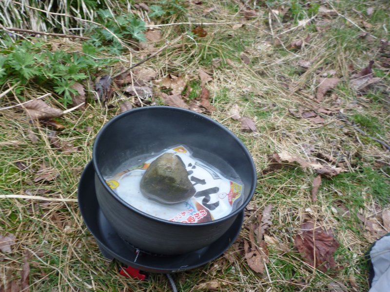 しょうがないのでちょっと道を外れ、そこで昼ごはんを作る。