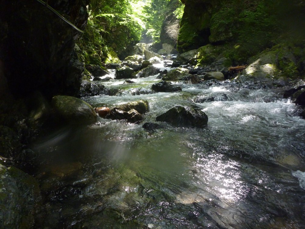 沢登って言っても、ロープを使って滝を登って行ったりするハードなんじゃなくて、ただ川を歩いて登っていくだけの、お手軽簡単沢遊びです。シャワークライミングとか言ったりもします。