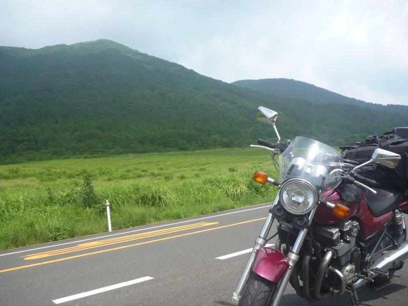 道中、せっかくなので三瓶山とバイクの写真なんかも撮っておく。