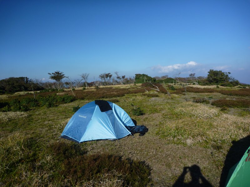 それ以上は踏み跡が多くて分かり辛い道になっとるので、酒も入ってるしということで引き返す。途中あちこちに寄り道して、テン場に戻る。
