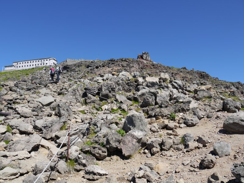 道中に避難小屋がいくつかあり、そのうちのひとつに、何故かライチュウのぬいぐるみが放置されてた。帰り道にのぞいたら、おっさんがそれを枕にして寝てた。なるほどあれは残置枕だったのか。