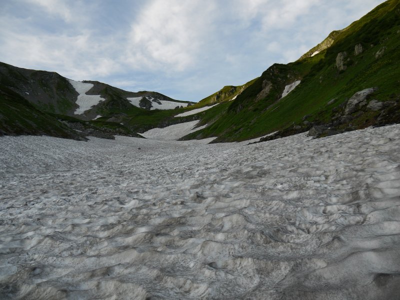 途中、雪渓を横切る場面が何度かあった。