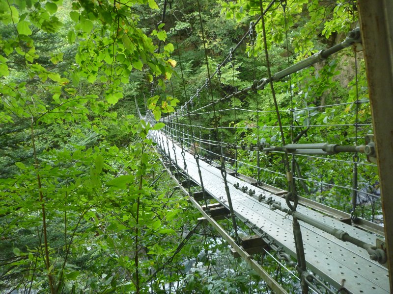 これがまた揺れるし、薄い鉄板を敷いただけって感じで、踏むといちいちヘコむしで俺大興奮!谷瀬のつり橋よか、よっぽど怖ぇぇ!