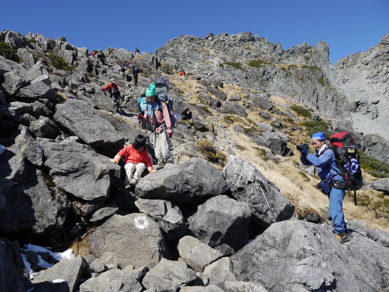 ここから涸沢岳までの道のりは結構険しい。
