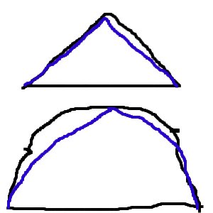 上が傾斜がきついテント。下が傾斜がゆるいテント。