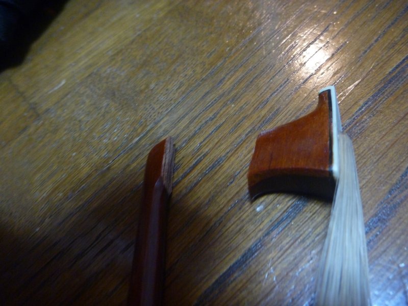 まぁ元々、楽器に付いて来たおまけの弓ですし、価格にして2000円ぐらいのもんなんで、粗末なものではあるんですが、それでも4年ぐらいは一緒にやってきた相棒だけに、ちょっと寂しい。