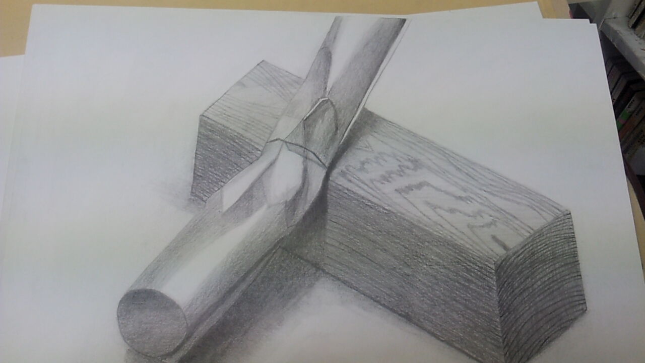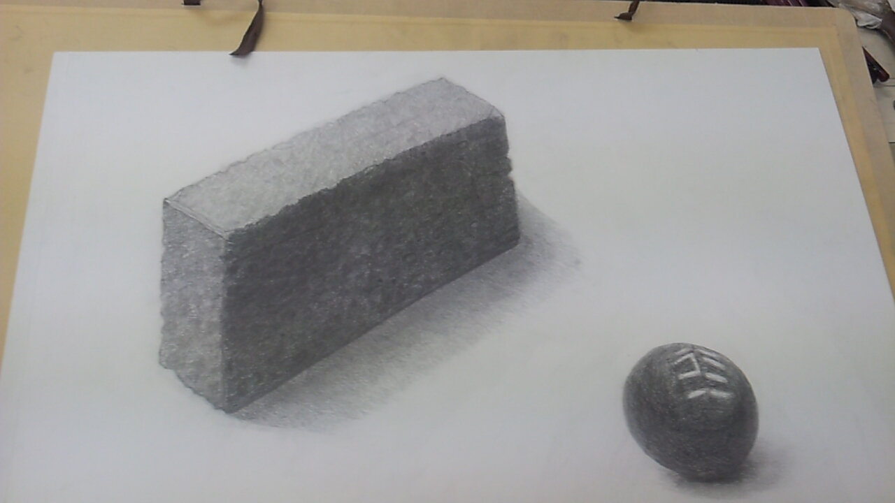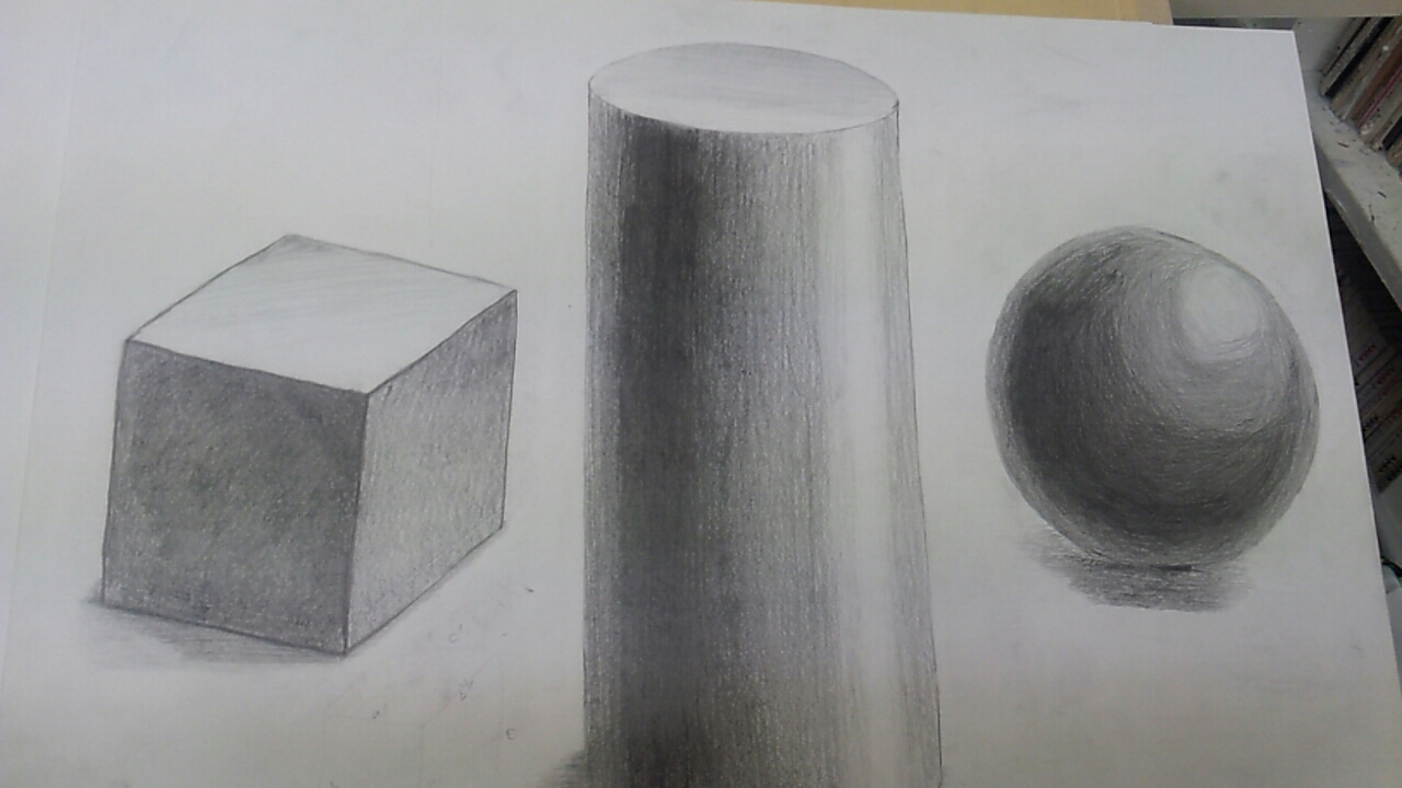 モチーフなしで、基本的な図形である四角、円柱、球を描くというもの。