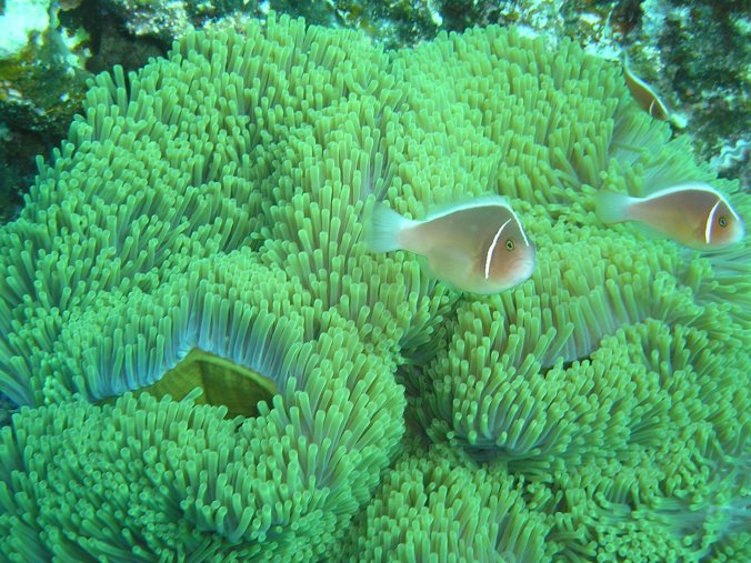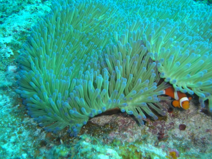 クマノミは毒を持つイソギンチャクに守ってもらうために、こんなところに住んでます。