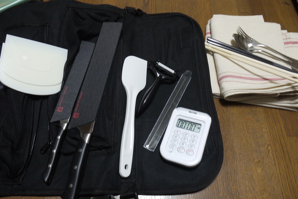そのあと制服(キッチン着)と教材(料理道具)をまとめて受け取る。