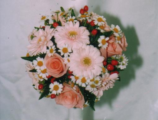 ブーケは手に持って移動することを前提にしてるので、花をしっかりオアシスに刺しておかないと、移動中にポロポロ落ちるなんて事に成りかねないので、けっこー気を使う。