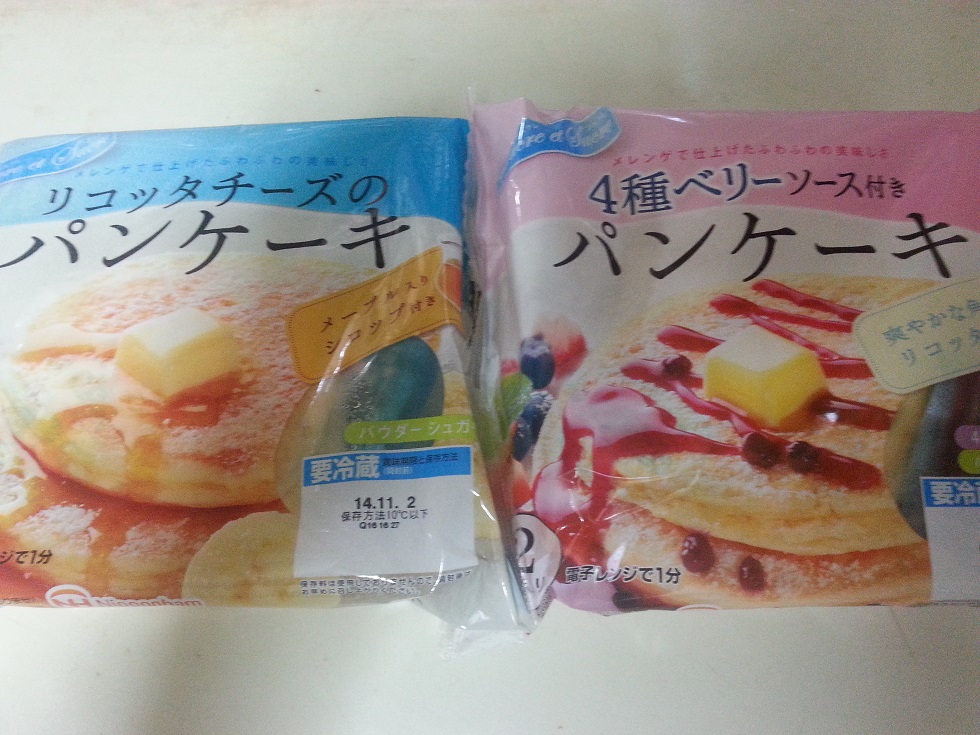 水色の袋の、リコッタチーズのパンケーキと、ピンク色の袋の、パンケーキリコッタチーズ入りを食べたわけですが。