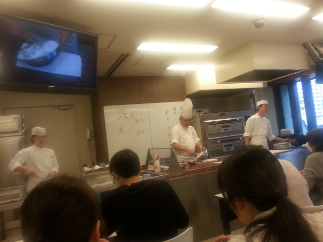 ここでも、卵の割り方から始まり、白身との分け方、白身に黄身が混ざってはいけない理由など、先生は喋りっぱなしの動きっぱなし。