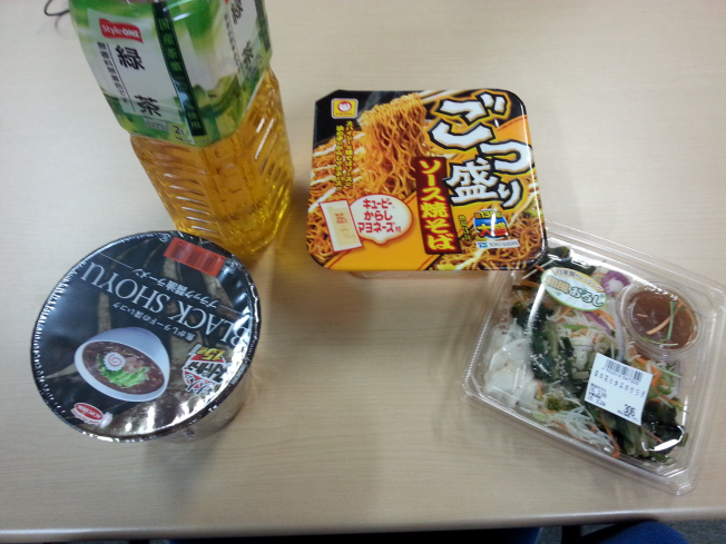 調子に乗ってカップめん2個。迷ったら両方いってまうタイプ。