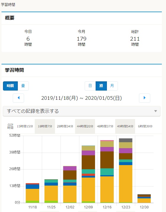 12月初旬ぐらいからスキマ時間を全て英語にそそぎ、1か月経過時点で月180時間ぐらい。