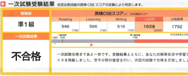 今の点数が、前後の級を含めての、合格圏内からどの程度離れていたかとか。