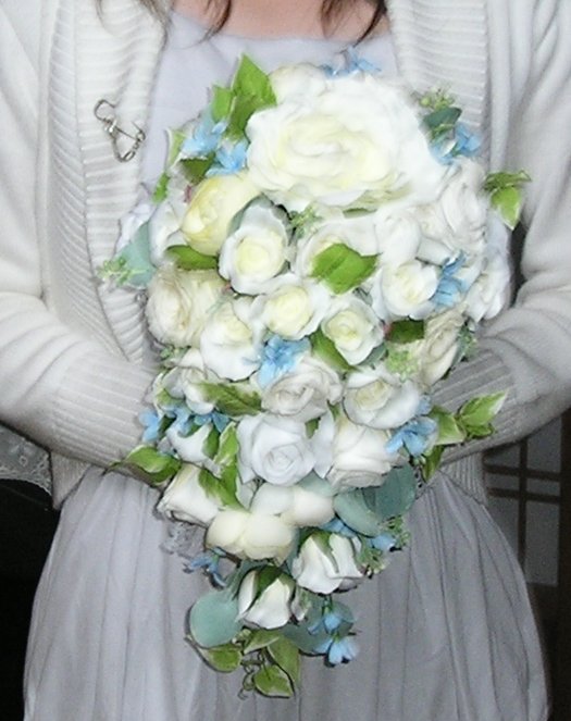白ドレス用の、キャスケード風垂れ下がりブーケ。