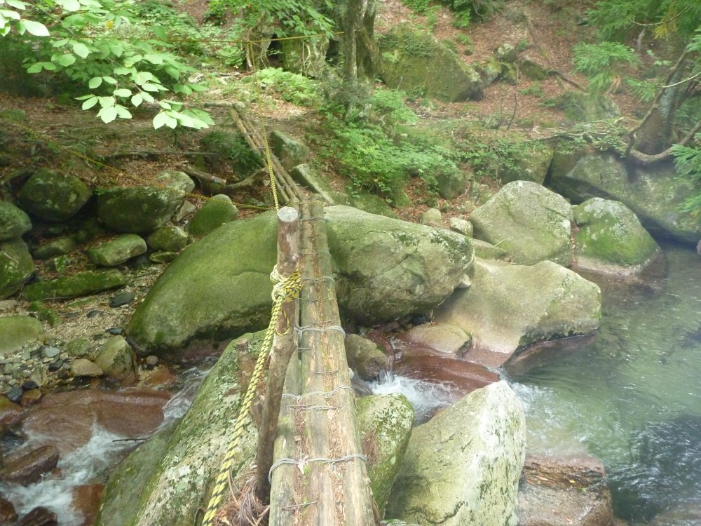 沢を渡ったりするところもあるんだけど、そこにもまた申し訳程度のロープが。