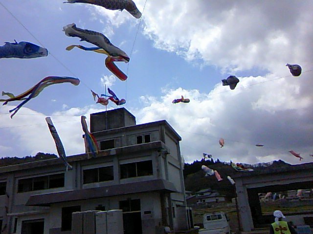 地元の人が来て、こいのぼりを揚げてかはりました。